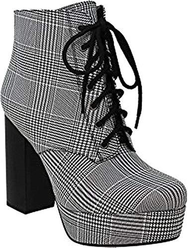 SODA Women's Korman Faux Leather Lace Up High Chunky Heel Ankle Booties (8.5 M US, Black/White-e)