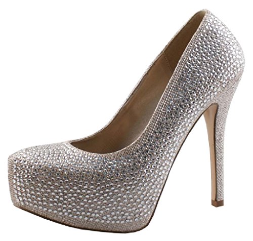 DEB Women's Kinko-5 Glitter Rhinestone Sparkle Stiletto Heel Platform Pumps