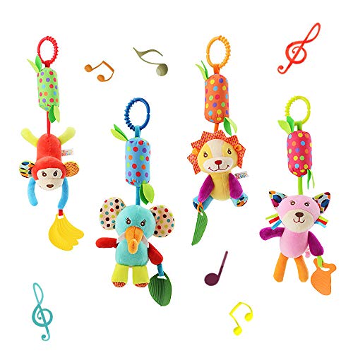 Activity & Entertainment, Baby & Child CareBaby Soft Hanging Wind Chime Rattle Toy – Crinkle Squeaky Sensory Learning Animal Plush Stroller Toy for Infant Newborn Toddler Car Seat Bed Crib Travel Activity with Teether for Boys Girls(4 Pack)