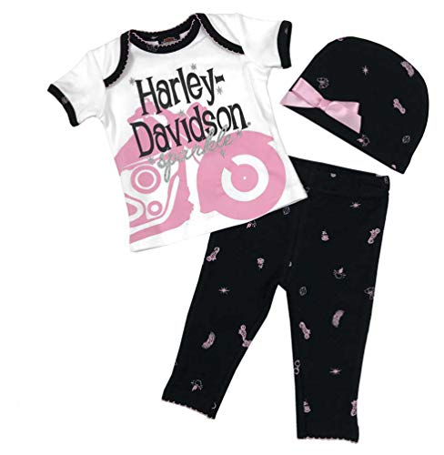 Harley-Davidson Baby Girls' Glittery Newborn 3-Piece Gift Set w/Gift Bag, White