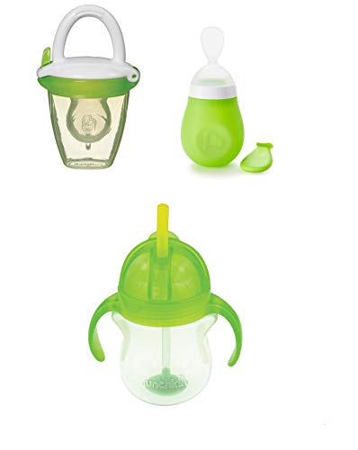 Baby & Child Care, FeedingMunchkin Baby Feeding Bundle Squeeze Presser Spoon, Baby Food Feeder Green & Click Lock Tip & Sip Straw Cup 200ml