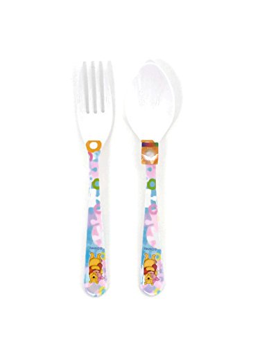 Disney Winnie the Pooh Small Melamine Kids Fork and Spoon Set (Pooh and Piglet)