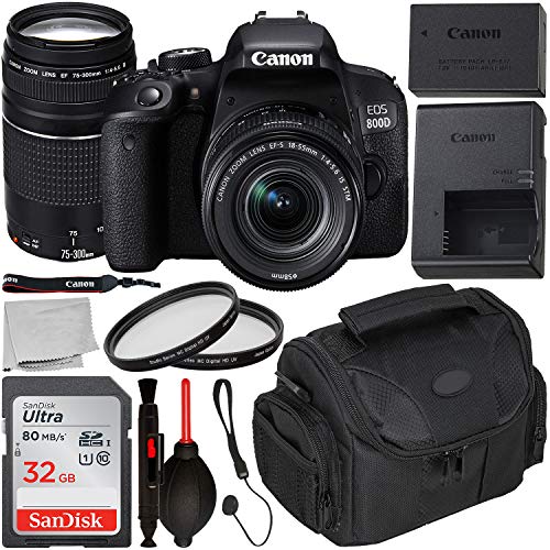 Canon EOS 800D DSLR Camera with 18-55mm is STM & 75-300mm III Lens & Starter Accessory Bundle – Includes: SanDisk Ultra 32GB SDHC Memory Card + Camera Carrying Case + 2X Ultraviolet Filter + More
