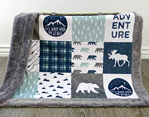 Moose Baby Blanket - Bear Baby Blanket - Minky Baby Blanket - Woodland Blanket -Baby Blanket - Nursery Decor - Crib Bedding - Faux Patchwork -Blue