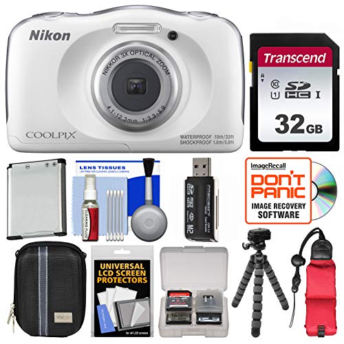 Nikon Coolpix W100 Wi-Fi Shock & Waterproof Digital Camera (White) with 32GB Card + Case + Battery + Flex Tripod + Float Strap + Kit
