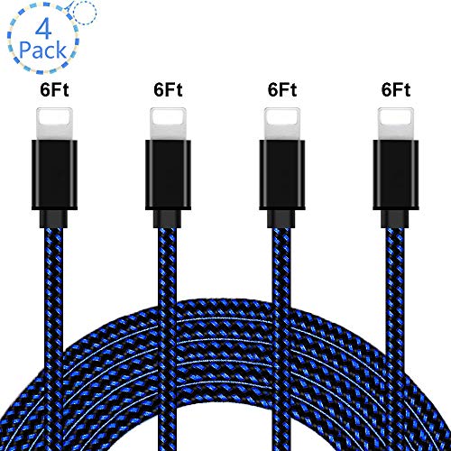 Peceony MFi Certified iPhone Charger Lightning Cable 4 Pack [6/6/6/6FT] Extra Long Nylon Braided USB Charging & Syncing Cord Compatible iPhone Xs/Max/XR/X/8/8Plus/7/7Plus/6S/6S Plus/SE/iPad/Nan More