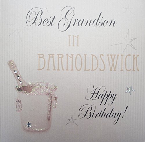WHITE COTTON CARDS Best Grandson Happy Handmade Town Birthday Card (Champagne Bucket, Barnoldswick)