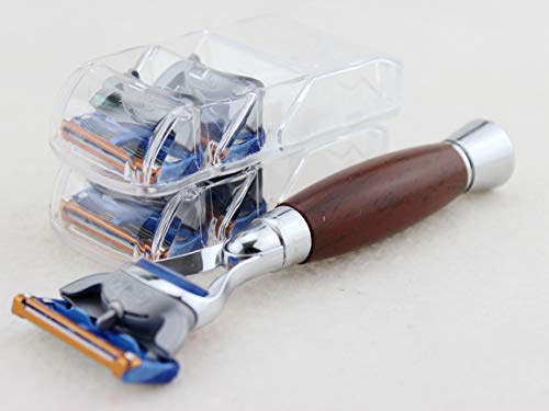 Frank shaving Brand New Fusion Compatible Cartridge Razor with faux rosewood color Handle Manual Razor including 5 Cartridge Refills