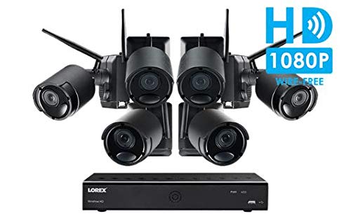 Lorex Wire-Free Cameras Security System 6 Channel DVR 6 HD Rechargeable Wire Free Black Metal Cameras(Ultra-Wide Lens, 150' Night Vision, 2-Way Audio Speaker-Mic)