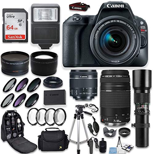 Canon EOS Rebel SL2 DSLR Camera + Canon EF-S 18-55mm + Canon 75-300mm & 500mm Telephoto Lens + Wide Angle & Telephoto Lens + Macro Filter Kit + 64GB Memory + Accessory Kit