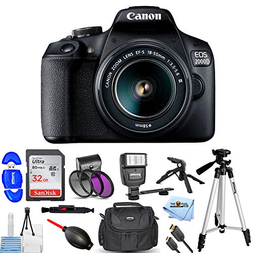 Canon EOS 2000D / Rebel T7 with EF-S 18-55mm III Lens Pro Bundle with 32GB SD, Flash, Filter Kit Tripods, Gadget Bag and More [International Version]