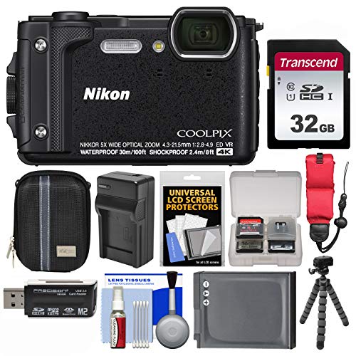 Nikon Coolpix W300 4K Wi-Fi Shock & Waterproof Digital Camera (Black) with 32GB Card + Case + Battery & Charger + Flex Tripod + Float Strap + Kit