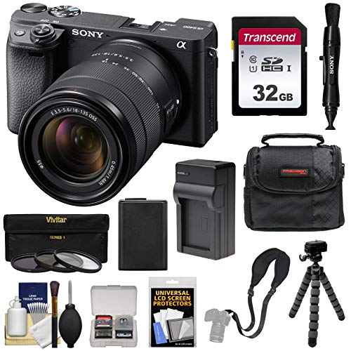 Sony Alpha A6400 4K Wi-Fi Digital Camera & 18-135mm Lens with 32GB Card + Battery + Charger + Case + Tripod + Kit