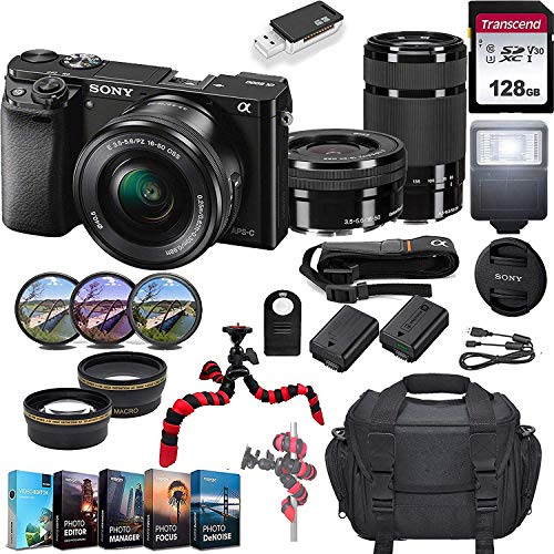 Camera, Camera & Photo, Electronics, SonySony Alpha a6000 Mirrorless Camera w/ 16-50mm & 55-210mm Lenses & 128GB SD Card Bundle(Black)
