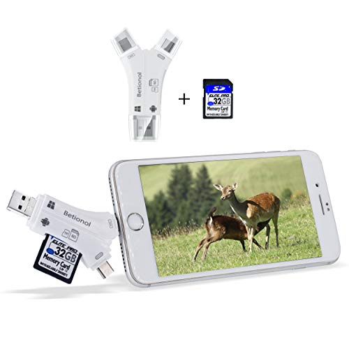 Accessories, Cell Phones & Accessories, Electronics, MicroSD CardsBetionol SD Card Reader for Trail Camera/SLR Camera with 32GB SD Card, SD/Micro SD Card Viewer with 4 in 1 Connectors for Smartphones to View Picture/Video, 32GB Class 10 Speed Card