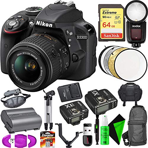 Nikon D3300 DSLR Camera with 18-55mm Lens (Black) + 64GB Memory Card + Round Head Speedlite V1-C + Flash Trigger Transmitter/Receiver Combo