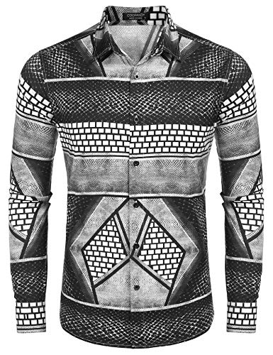 COOFANDY Men's Floral Button Down Shirt Long Sleeve Slim Fit Casual Paisley Dress Shirt