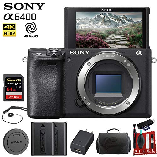 Sony Alpha a6400 Mirrorless Digital Camera (ILCE-6400/B) with Bag, Extra Battery, 64GB Memory Card, Memory Card Reader and More.