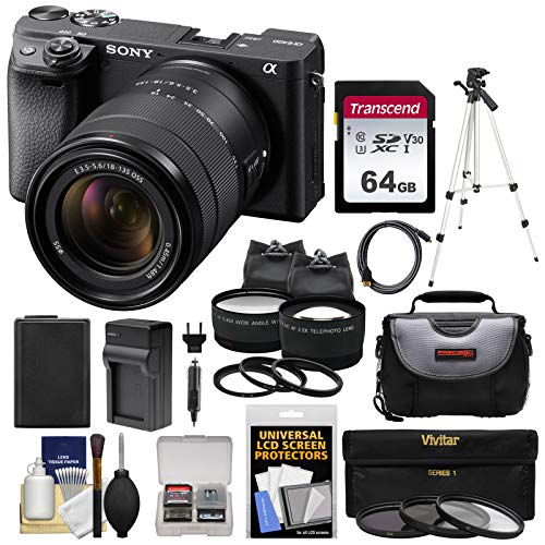 Sony Alpha A6400 4K Wi-Fi Digital Camera & 18-135mm Lens with 64GB Card + Battery + Charger + Case + Tripod + 2 Lens Kit