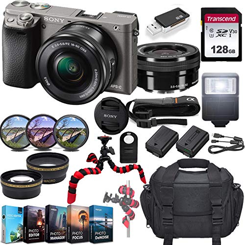 Sony Alpha a6000 Mirrorless Camera w/ 16-50mm Lens & 128GB SD Card Bundle(Graphite)