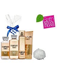Bath and Body Works CHAMPAGNE TOAST Gift Kit Lotion ~ Cream ~ Fragrance Mist ~ Shower Gel + FREE Shower Sponge Lot of 5
