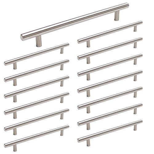 homdiy Cabinet Handles Brushed Nickel - HD201SN Cabinet Pulls 15 Pack Drawer Pulls 8in Hole Centers Cabinet Hardware Modern Handles for Dresser Drawers