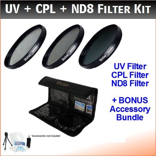 43mm Digital High-Resolution ND8 Filter Kit (UV, CPL, ND8) w/ pouch for Select Canon Digital Cameras. Bundle Includes Multi-Coated 3 PC ND8 Filter Kit (UV, CPL, ND8) & UltraPro Accessory Set