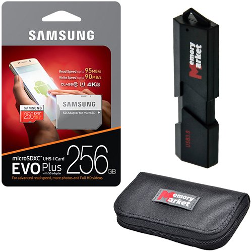 Samsung Evo Plus 256GB MicroSD XC Class 10 Grade 3 UHS-3 Mobile Memory Card (MB-MC256DA) with ultra high speed USB 3.0 MemoryMarket MicroSD & SD Memory Card Reader and Memory Card Wallet