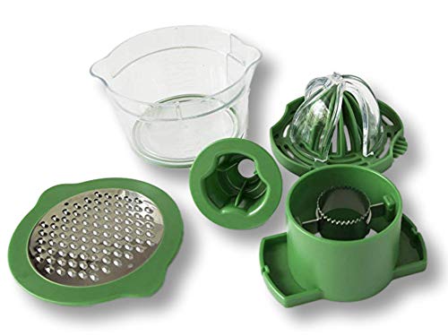 GET IN AND OUT OF THE KITCHEN FAST by using one tool to grate, juice, core, and measure. No need to drag out your electric appliances and several other tools – just prepare your food and pop all the parts in the dishwasher for quick prep and clean-up. The multi functional juicer also works ans an egg yolk separator when you flip it over!