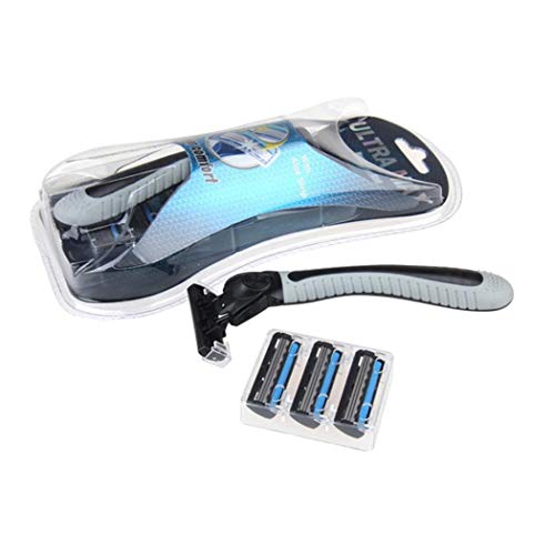 Oguine Manual Razor, Men Manual Shaving 3-Layer Portable Hair Removal Shaver With 3 Blades for Travel Home Use