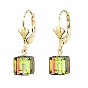 Clothing, Earrings, Jewelry, Women's FashionSwarovski Crystal Cube Drop Earrings for Women Leverback Dangle Earrings 14K Gold Plated Hypoallergenic Jewelry