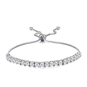 【Adjustable Bolo Bracelet】20 exquisite Zircon with ‘Hearts and Arrows’ cutting effect. Zircon full length 3.15”(8cm) perfect coverage on the wrist. Bright sliding buckle and stronger but lightweight box chain with smooth edges. Chain could adjust range is 6-9 inch.