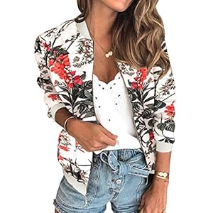 Clothing, Coats, Jackets & Vests, Women's FashionECOWISH Women’s Casual Floral Zip Up Inspired Bomber Jacket Leopard Coat Stand Collar Lightweight Short Outwear Tops