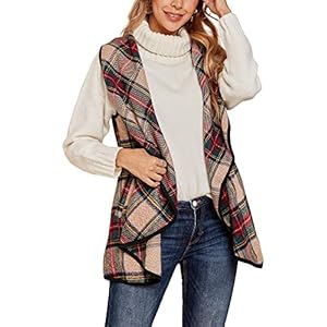 Clothing, Coats, Jackets & Vests, Women's FashionGemijack Womens Buffalo Plaid Vest Sleeveless Open Front Lapel Cardigans with Pocket