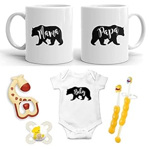 ✅THE PERFECT CONGRATULATIONS GIFT IDEA: It is hard to come up with a unique gift bundle sometimes. You can’t go wrong with an uncommon, not sold in stores coffee mug that tells the world about those drinking from it. TWO IS BETTER THAN ONE: This set of “PAPA BEAR and MAMA BEAR” NEW PARENTS COUPLES MUG SET is the perfect gift for expecting and new parents. Show your love and gratitude with this set of 2 premium ceramic mug, baby romper, giraffe teether, Pacifier, and Learn to Brush toothbrush.