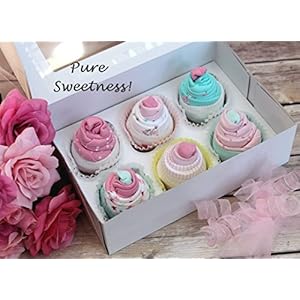 All six cupcakes are hand-made from precious onesie outfits and socks in size 3-6m.