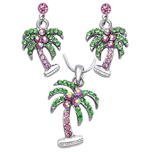 Palm Tree Charm Pendant Necklace Dangle Drop Hook Earrings Jewelry Set