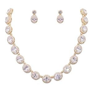 Clothing, Jewelry, Jewelry Sets, Women's FashionLavencious Tennis Oval Necklace & Earrings Jewelry Set AAA Cubic Zirconia Rhodium Plated