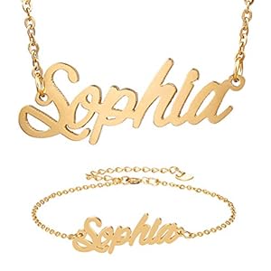 Sophia Name Necklace & Bracelet set, 18k Gold Plated