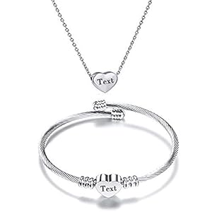 Clothing, Jewelry, Jewelry Sets, Women's FashionNIBASTAR Heart Jewelry Set Stainless Steel Necklace Bracelet for Women Girls (Silver-Engraved)