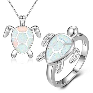 Clothing, Jewelry, Jewelry Sets, Women's FashionJunXin Women Sea Turtle Jewelry Set, White Gold Plated Sea Turtle Necklace Ring for Women with Opal Size 6/7/8/9/10
