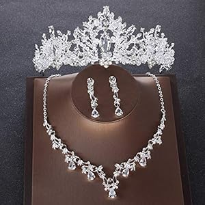 Clothing, Jewelry, Jewelry Sets, Women's FashionNoble Crystal Beads Heart Bridal Jewelry Sets Silver Fashion Wedding Jewelry Rhinestone Tiaras Crown Necklace Earrings for Bride