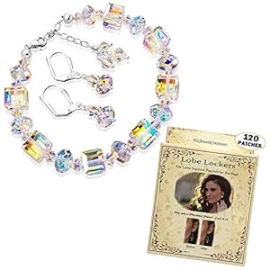 Clothing, Jewelry, Jewelry Sets, Women's FashionHisJewelsCreations Crystal Bracelet Romance and Earrings Set with Aurora Borealis Crystals by Swarovski Adjustable 7” – 8.5 Charm Jewelry Gift Box Set