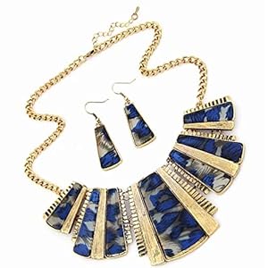 Clothing, Jewelry, Jewelry Sets, Women's Fashionsameno 2018 Fashion New Girl Women Mixed Style Bohemia Leopard Bib Chain Necklace+Earrings Jewelry (Brown)