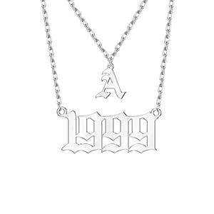 Clothing, Jewelry, Necklaces, Women's FashionMeMoShe Personalized Birth Year Number Necklace, Custom Old English Initial Name Necklace Customized Anniversary Date Jewelry for Women