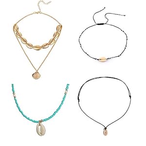 Clothing, Jewelry, Necklaces, Women's FashionKWHY 4 Pieces Natural Shell Choker Necklace Handmade Hawaii Beach Choker Adjustable Necklace for Women Girls