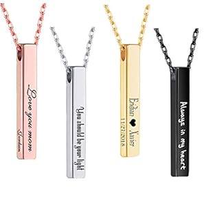 Clothing, Jewelry, Necklaces, Women's FashionHybedora Personalized Bar Necklace, Engraved 4 Sided Vertical Custom Names Necklace with Any Message Jewelry Gift for Men