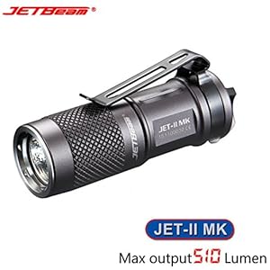 Jetbeam JET-II MK CREE XP-L HI LED Flashlight – 510 Lumens LED: Cree XP-L HI Max output:510 lumen Glass: Ultra-clear mineral glass Material:Aircraft grade aluminum alloy Body: type III hard anodize Battery:1*16340 or CR123 Small size,convenient for everyday carry. Specially designed for hiking, camping and emergency use Four brightness levels. With max output of 510 lumen Max beam distance up to 138 meters. max 4800cd Effective power management circuit; max runtime 150hours Battery reverse protection function Waterproof rating IPX8(underwater 2 meters) 1.5 meter impact resistant Brightness Outputs: High – 510 Lumens – 45 Minutes Medium – 100 Lumens – 1 Hour 30 Min. Low – 5 Lumens – 15 Hours Ultralow – 0.5 Lumens – 150 Hours Peak Beam Distance: 138 meters Peak Beam Intensity: 4800 CD Dimensions: Length:65mm Head diameter: 21.8mm Tail diameter 21.8mm Weight: 30 gram(without Battery)