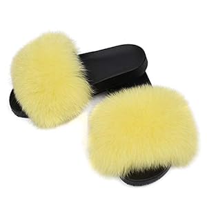 Clothing, Shoes, Slippers, Women's FashionJancoco Max Real Fox Fur Slides for Women 66018B Furry Beach Sliders Indoor Fluffy Slippers 2019 New