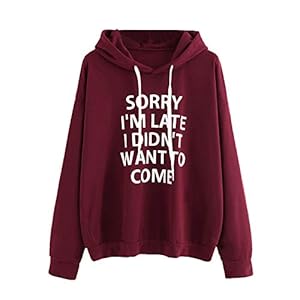 Clothing, Fashion Hoodies & Sweatshirts, Women's FashionSwyss Fashion Sweatshirt, Women Long-Sleeve Hoodie ‘Sorry I’m Late I Didn’t Want to Come ‘Letter Printed Hooded Pullover